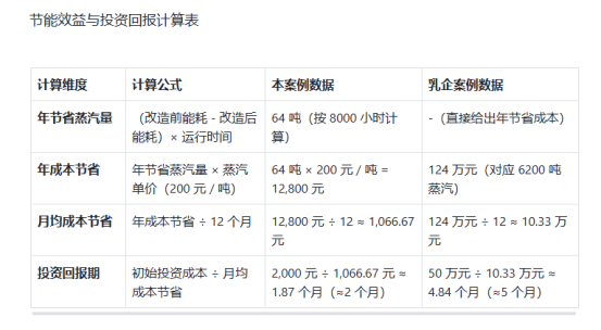 投資回報期:保溫套成本約2000元,2個月內即可回本。