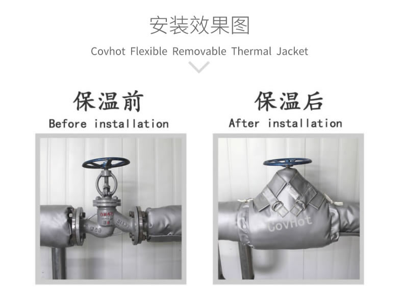 3. 維護的便利性,如果閥門需要維修或者拆裝,普通巖棉保溫拆除后無法二次利用,柔性可拆卸閥門保溫套可以循環使用。