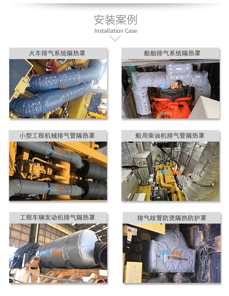 排氣管隔熱套主要用于船用柴油機排氣系統保溫隔熱、發電機配套動力系統排氣保溫隔熱、礦山車輛發動機排氣系統保溫隔熱等其他類型的車輛排氣系統保溫隔熱。