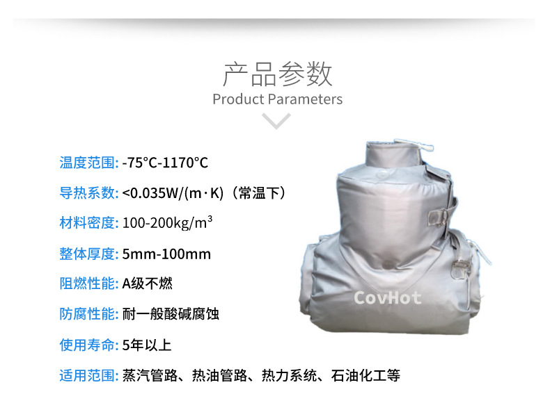 可拆卸截止閥保溫套可以滿足不同領(lǐng)域的柔性保溫應(yīng)用需求??梢院芊奖氵M行拆裝操作,可重復(fù)多次使用,以最大化其經(jīng)濟效益,降低熱損耗。對于一些表面形狀特殊、復(fù)雜的設(shè)備隔熱(防火),柔性隔熱防火)套也能顯示其獨特的優(yōu)勢。經(jīng)測試計算,采用本產(chǎn)品后,通??晒?jié)約熱能達90%以上。有些用戶短投資回收期僅為6個月左右。