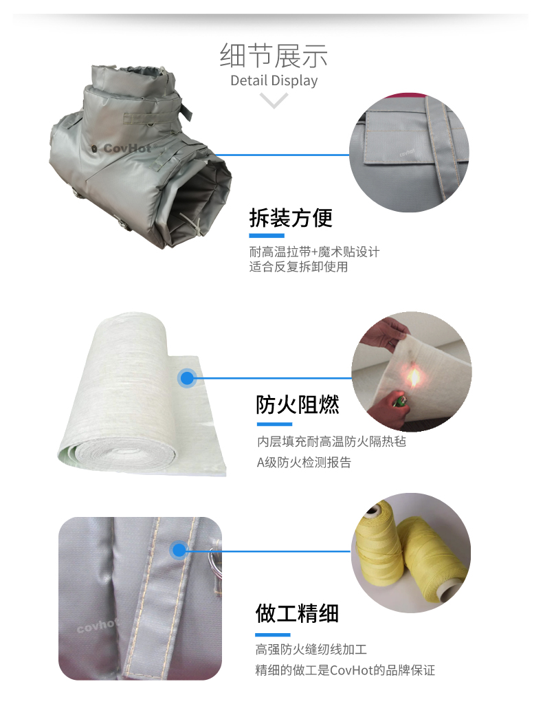 截止閥保溫,如果選用傳統(tǒng)鐵皮保溫的話,具有施工周期長,拆卸不便捷,無法重復(fù)使用等缺陷。而截止閥保溫罩是柔性保溫產(chǎn)品,選用導(dǎo)熱系數(shù)低的原材料加工制作而成,具有與設(shè)備貼合度高,方便拆裝,能夠多次反復(fù)使用等效果。而且,保溫隔熱效果顯而易見。在一定程度上彌補(bǔ)了傳統(tǒng)鐵皮保溫的缺陷。