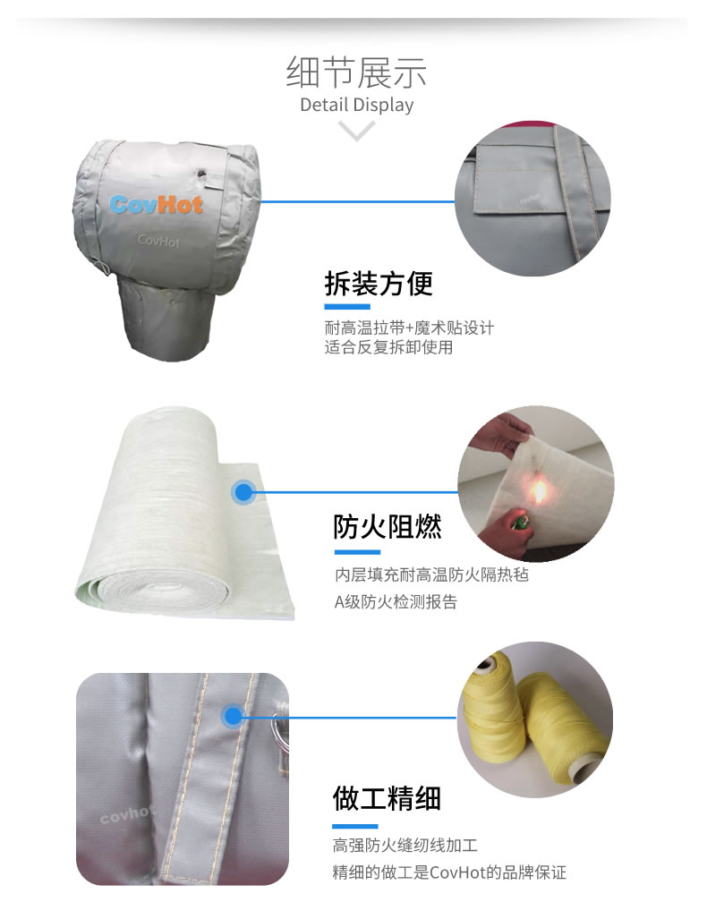 可拆卸保溫衣安裝施工方便快捷,施工周期短,可大大節約大修時間,從而提高設備利用率,給企業帶來更好的經濟效益;